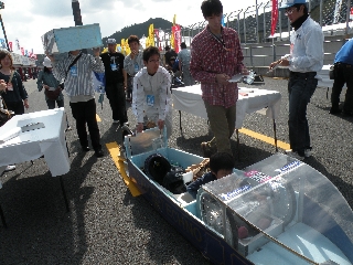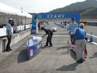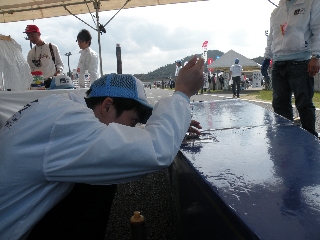 スタート前のドライバー達。ゲンが見ているのはエンジン温度です。