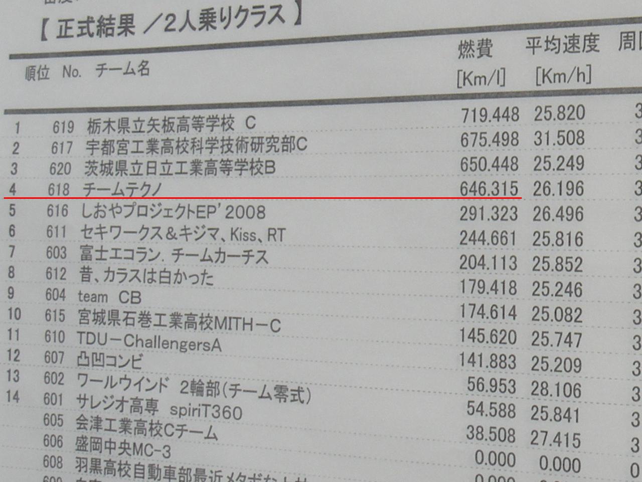 消費燃料は6.5ccなので燃費は700Km/lくらい?あっさりとチーム記録更新。